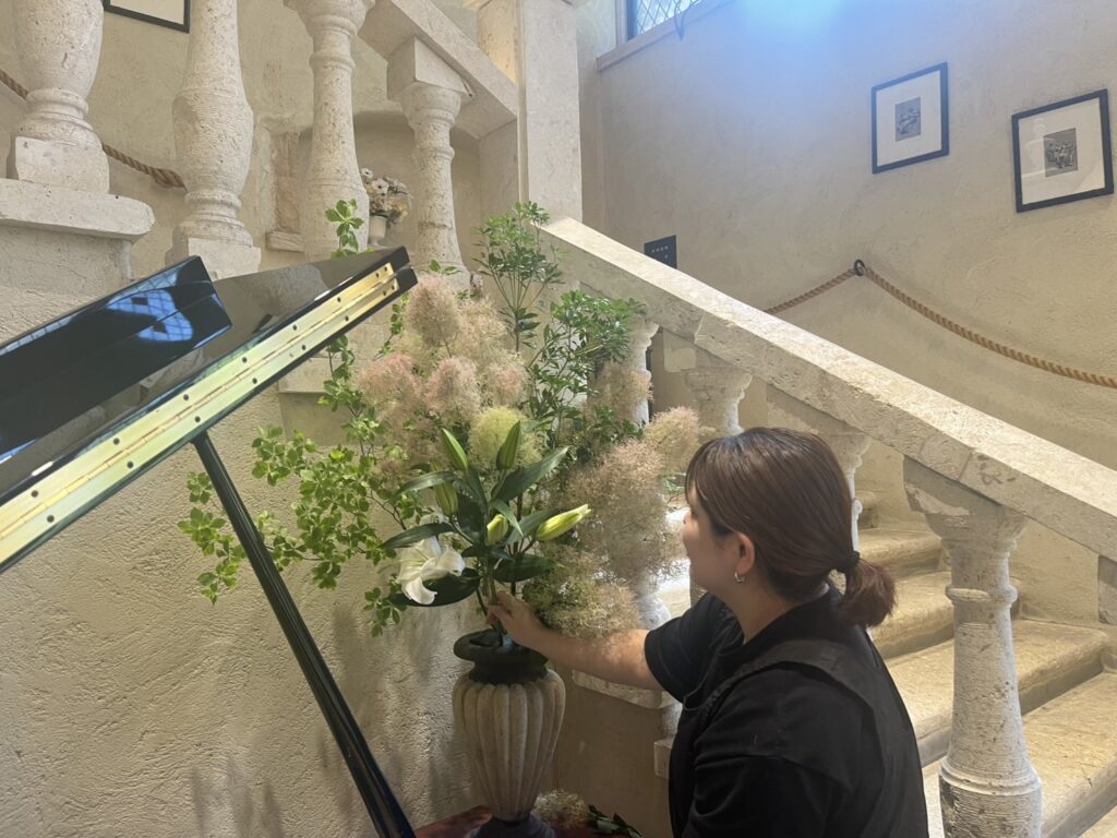 先日、ミッシェルガーデンコートの花の生け替えを片桐が行いました🌼