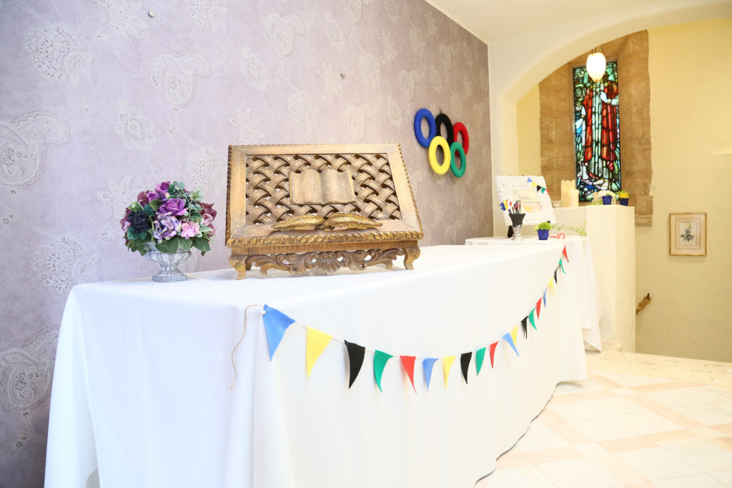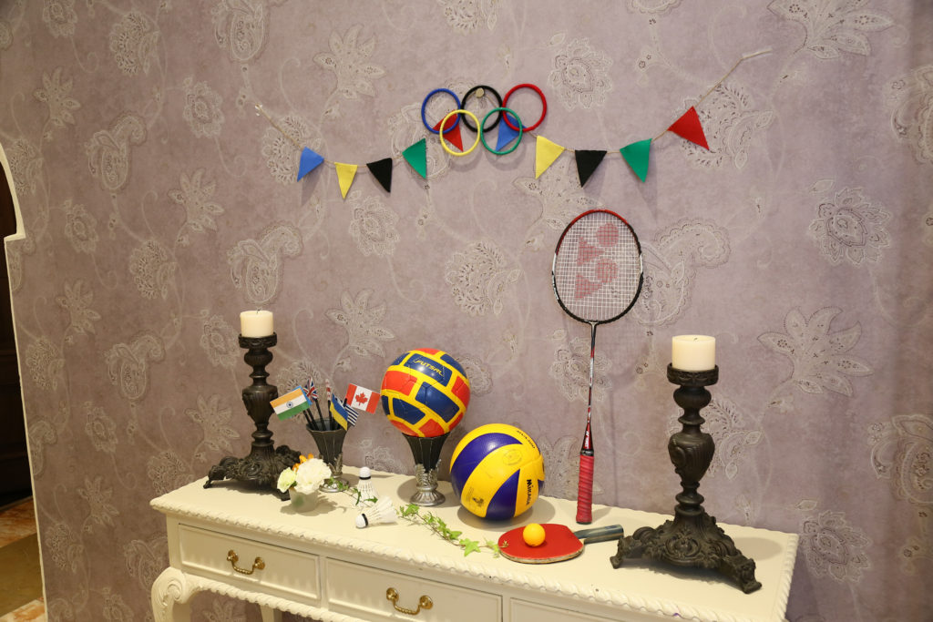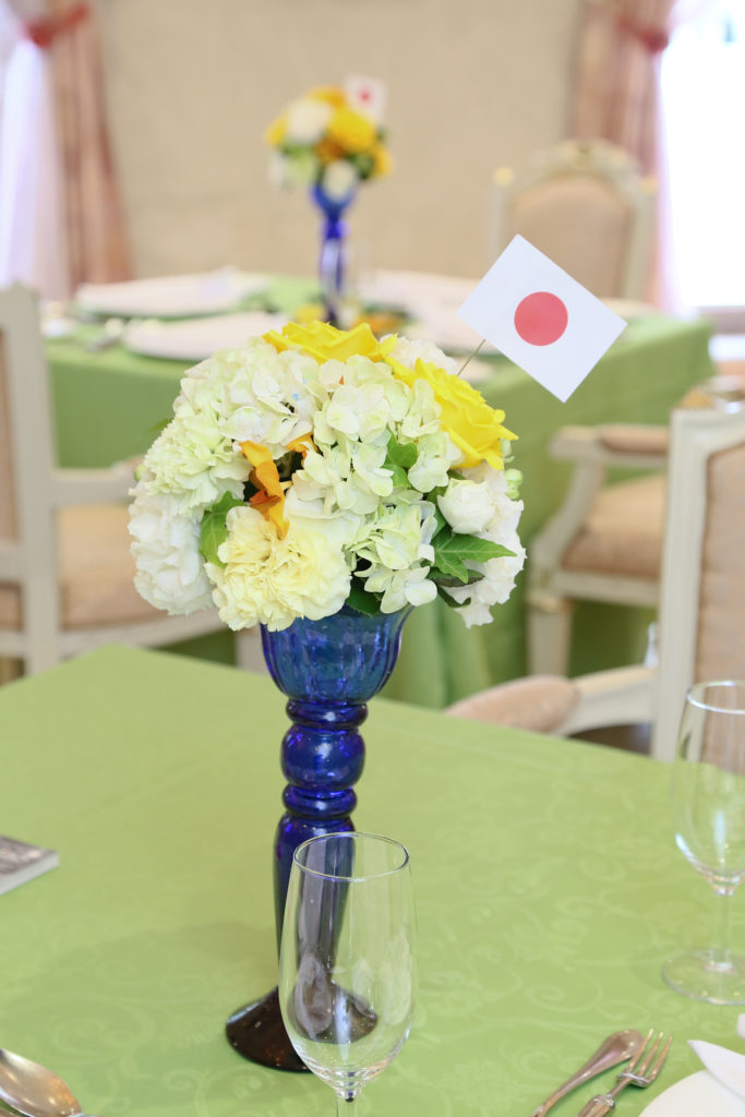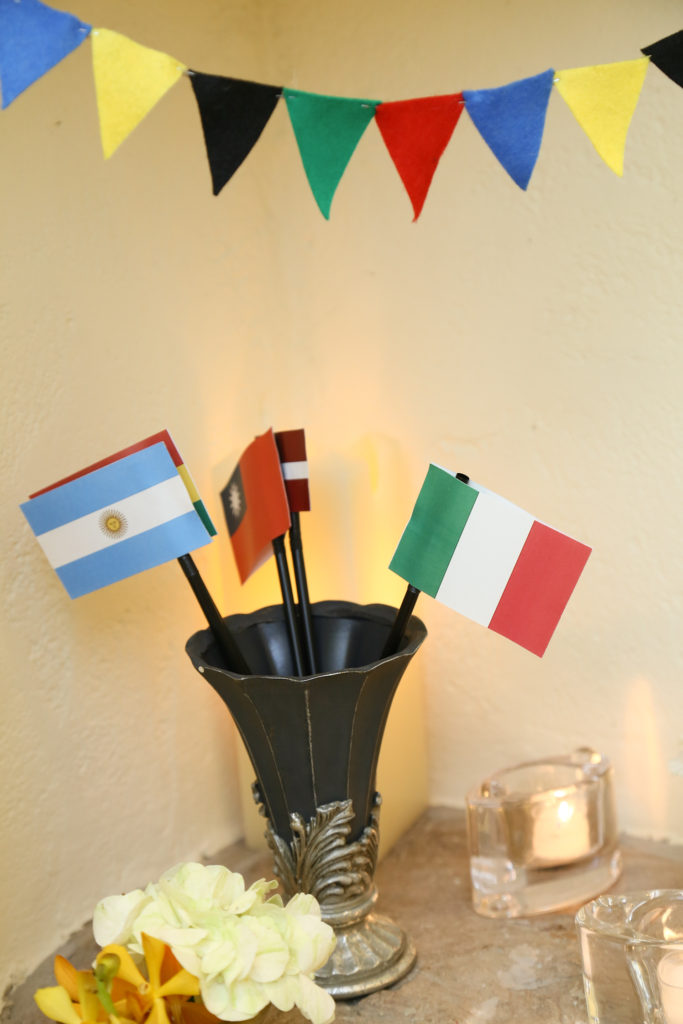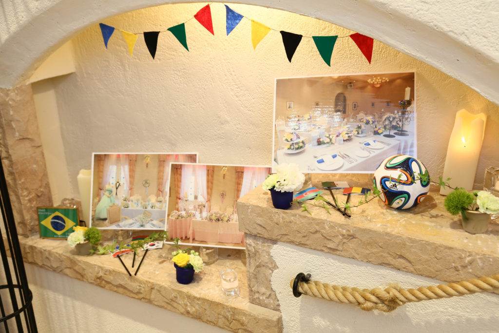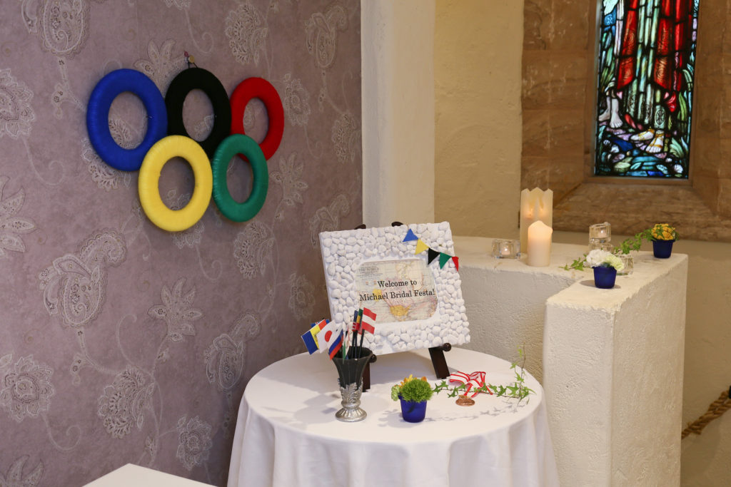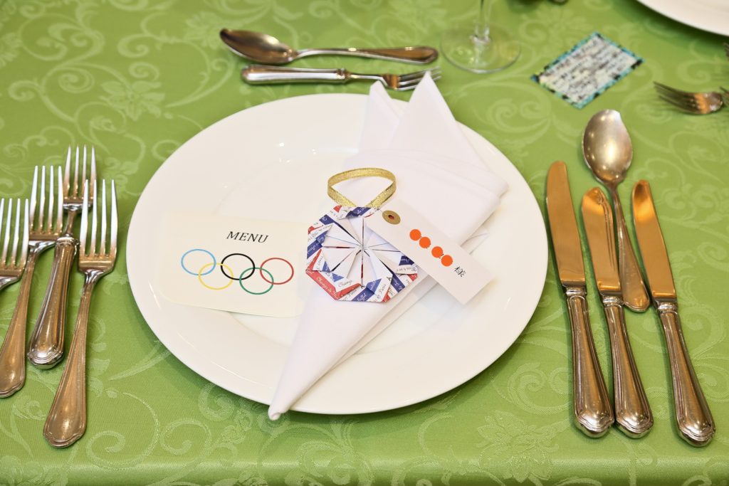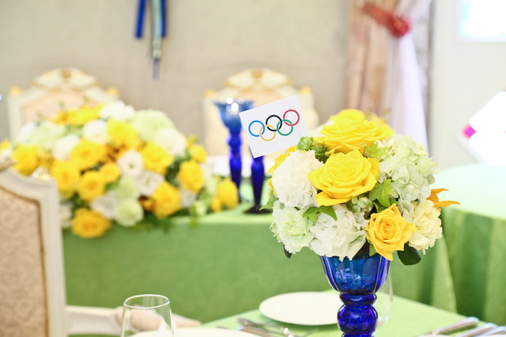 様々な国の国旗を飾ったり、席札にメダルがセットされていたり🏅