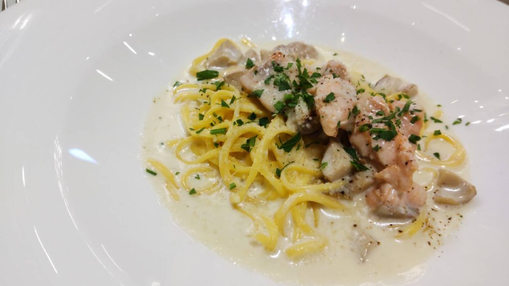 【パスタ】タヤリンのポルチーニと秋鮭のクリームソース和え