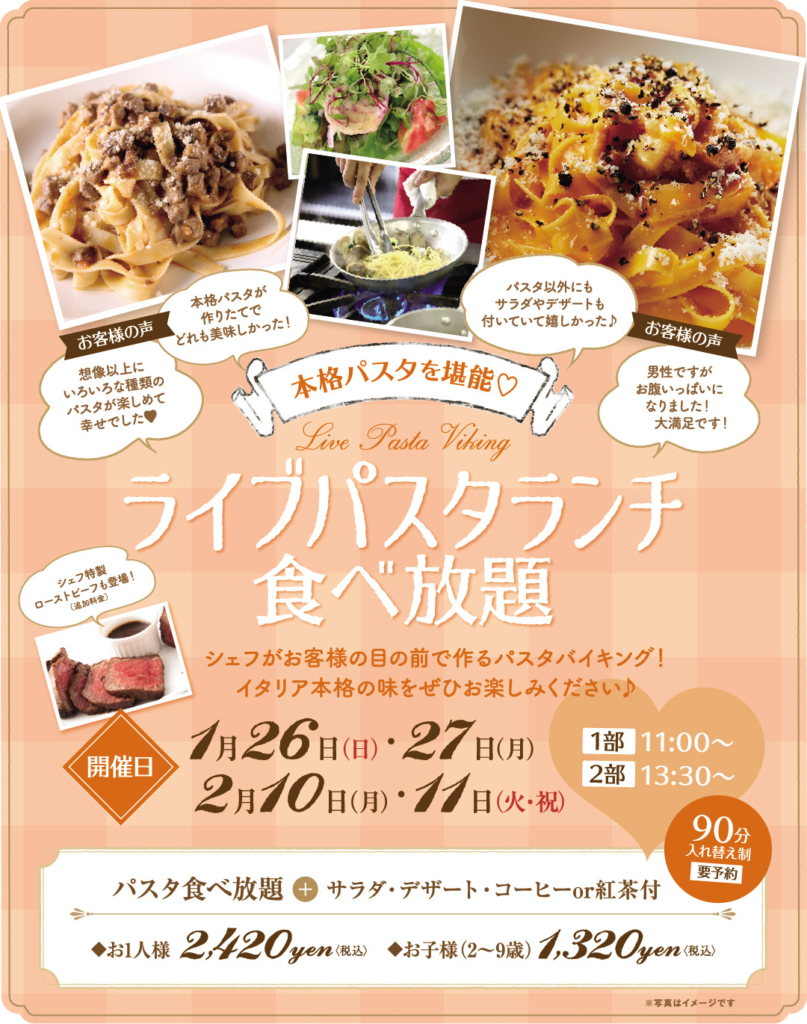 毎年好評をいただいているライブパスタランチの食べ放題を開催します!