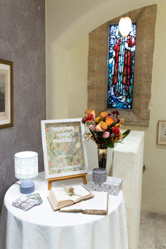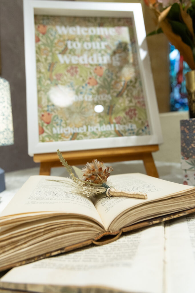 白いクロスに濃い色味のウィリアム・モリスの作品が良く映えています✨