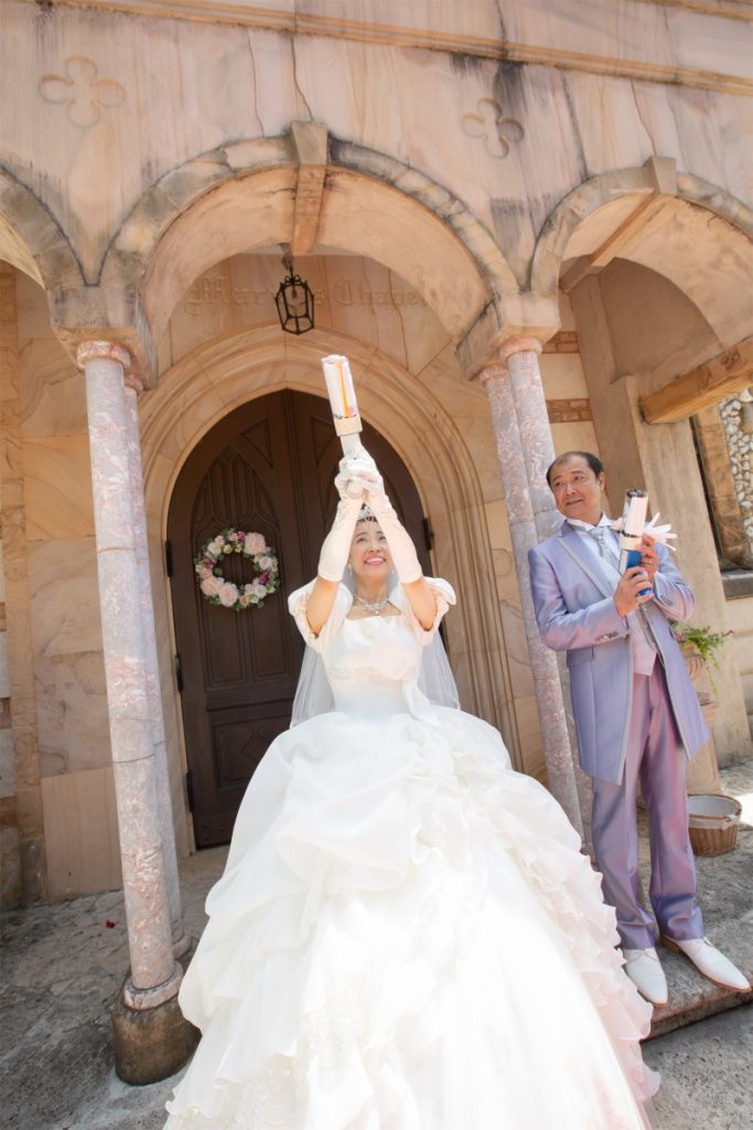 結婚式の後には、礼拝堂前のオープンデッキでライスシャワー&フラワーシャワー🌹
