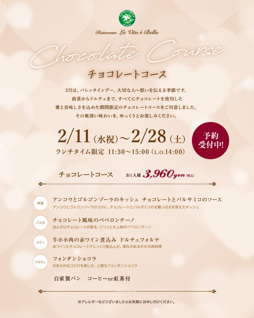 昨年もバレンタイン期間限定のコースを展開していましたが、