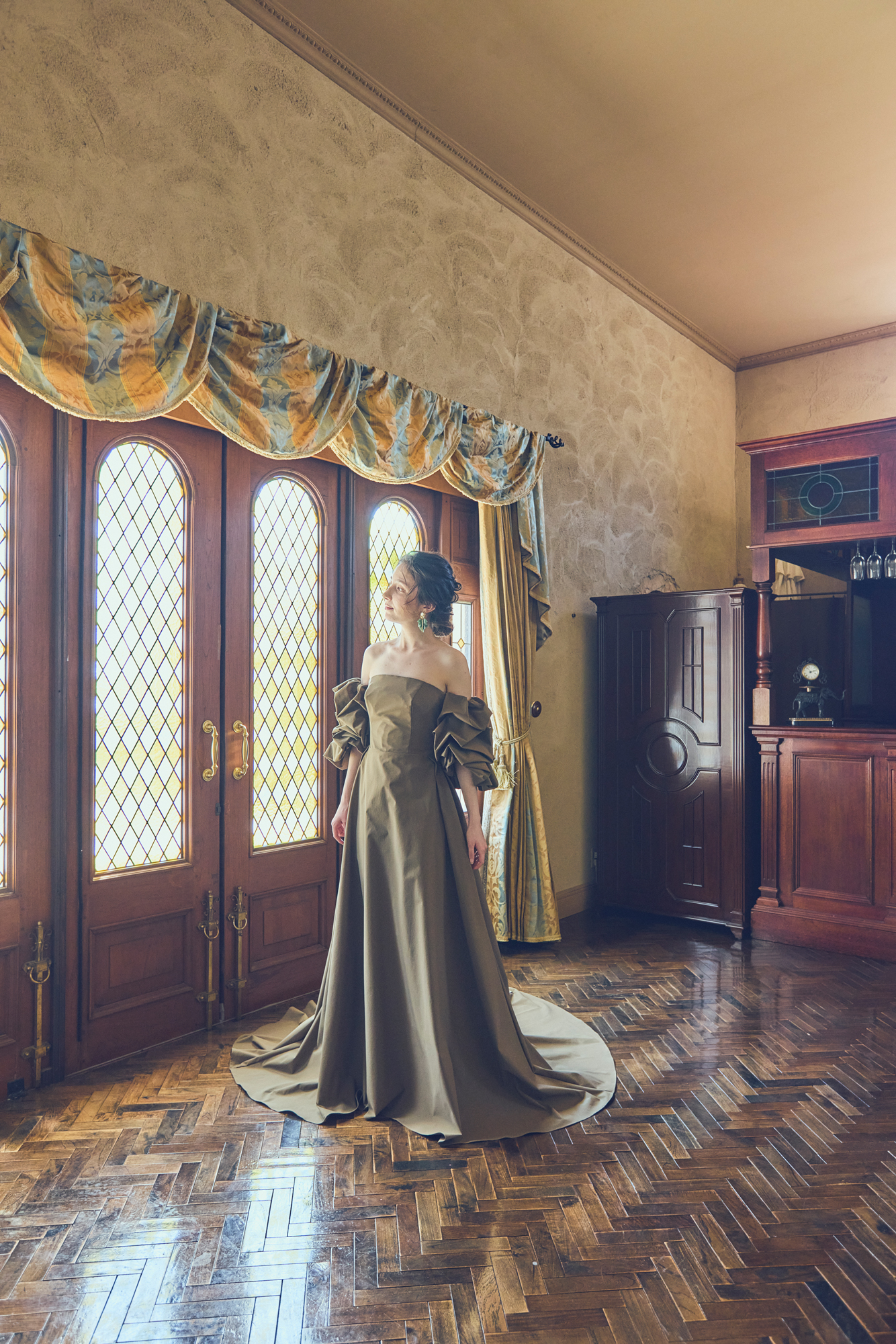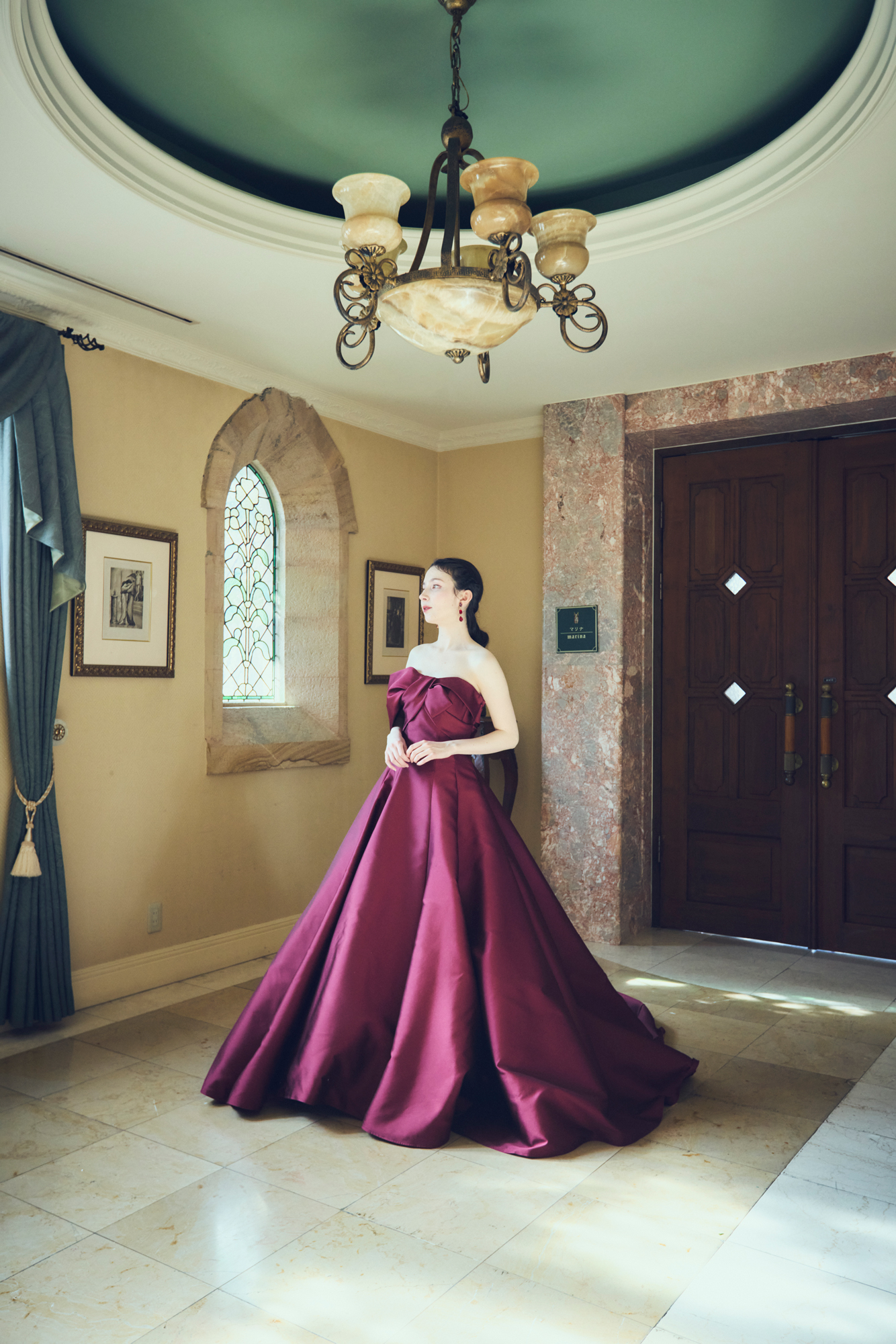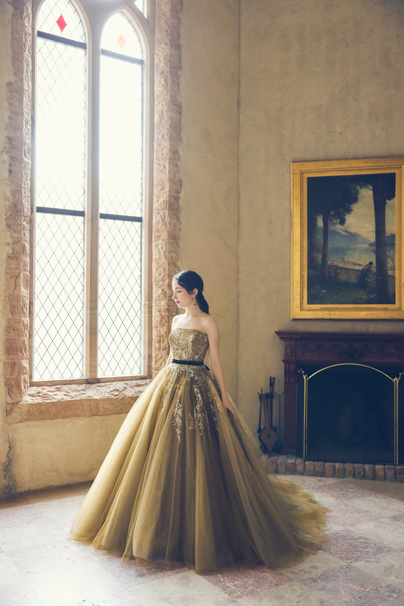 緑・赤・ゴールドなど煌びやかな雰囲気に映えるカラードレスからお気に入りの1着をお選びください。