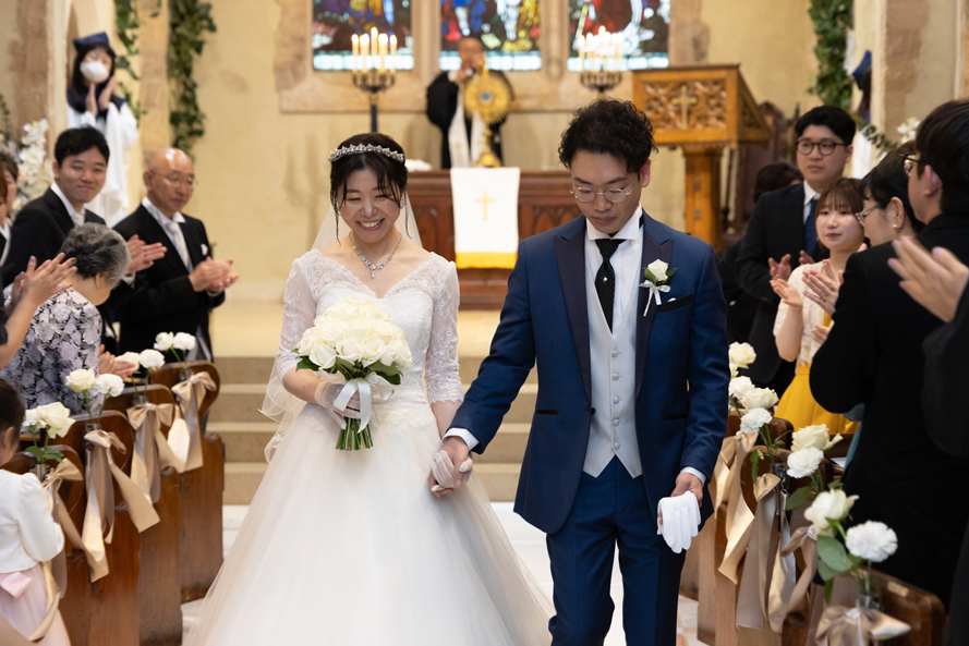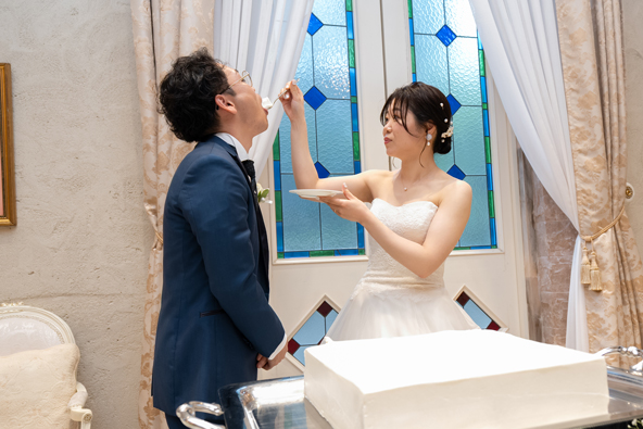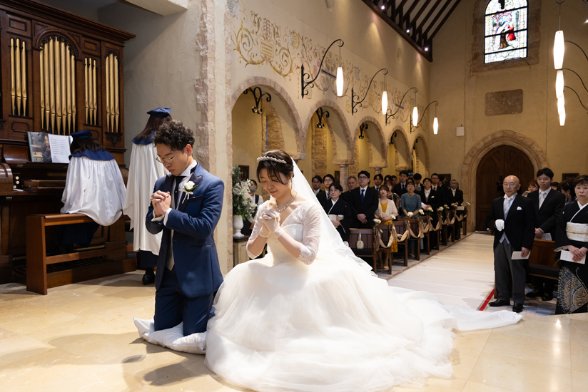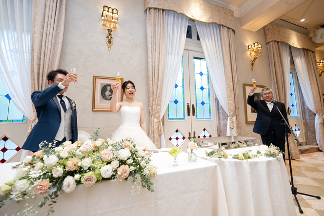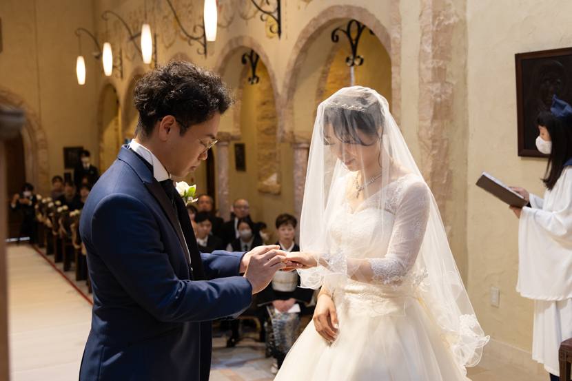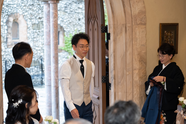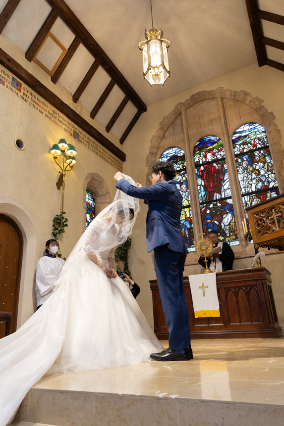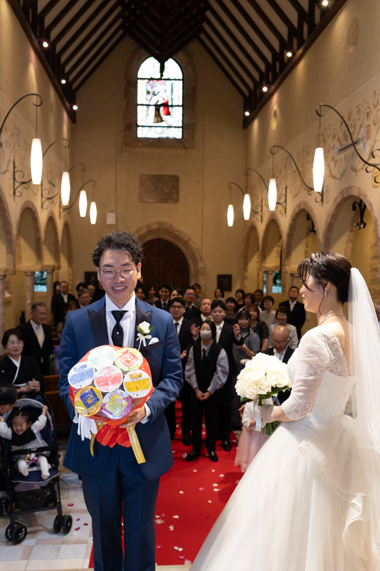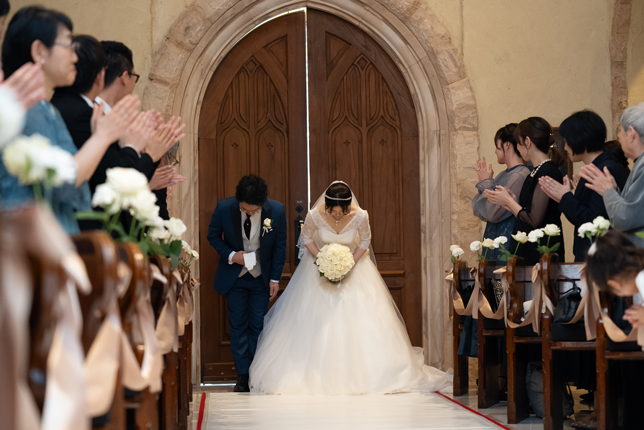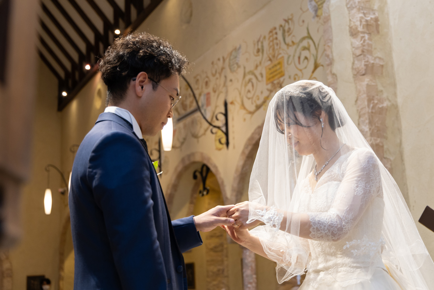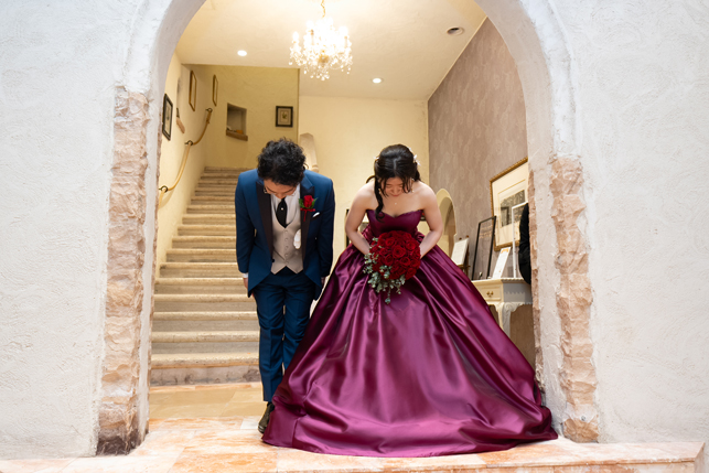 付き合いたての時にステンドグラス美術館を訪れ、外観に一目惚れし、ここで結婚式を挙げたいと思ったから。