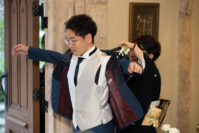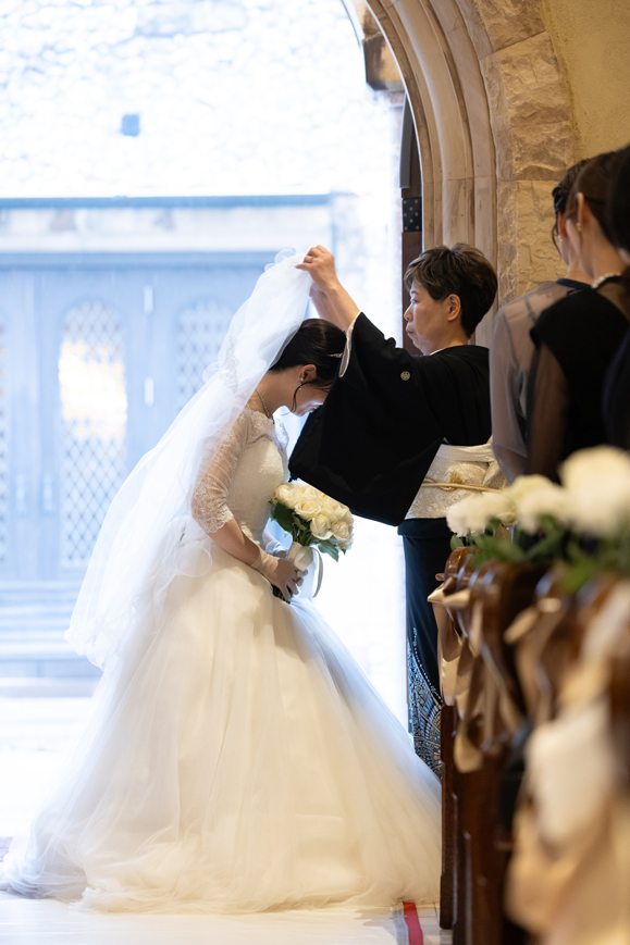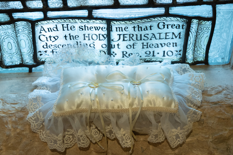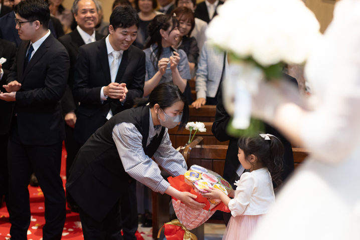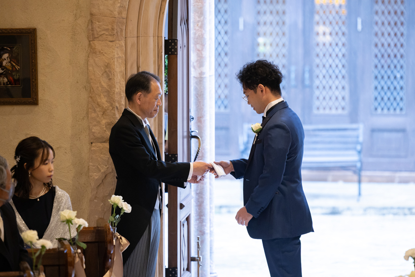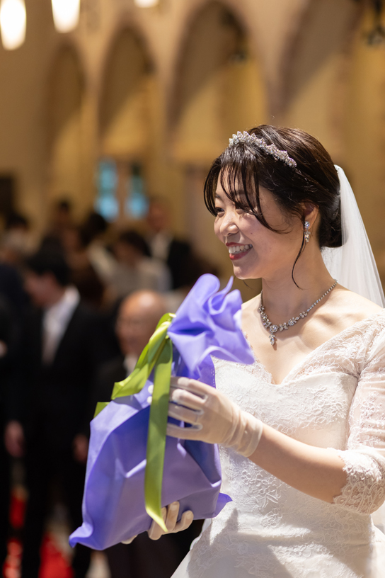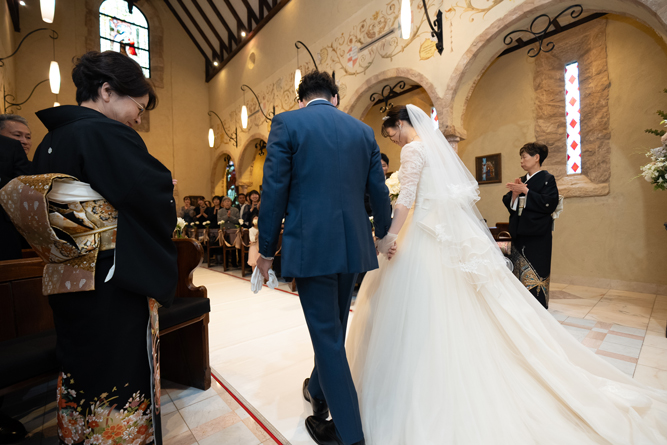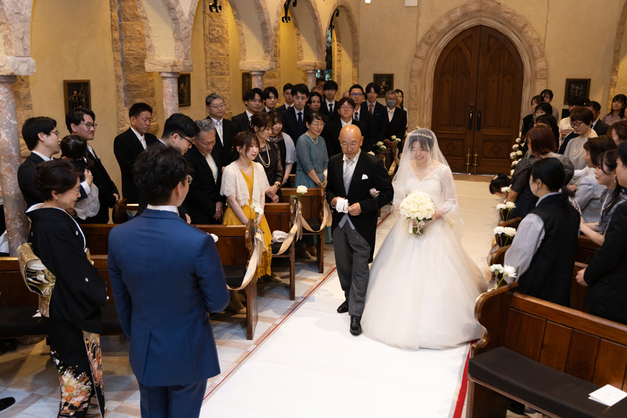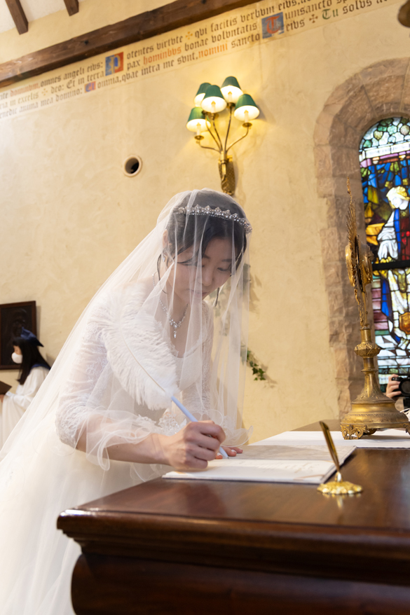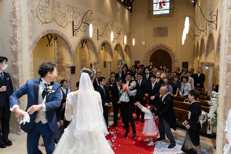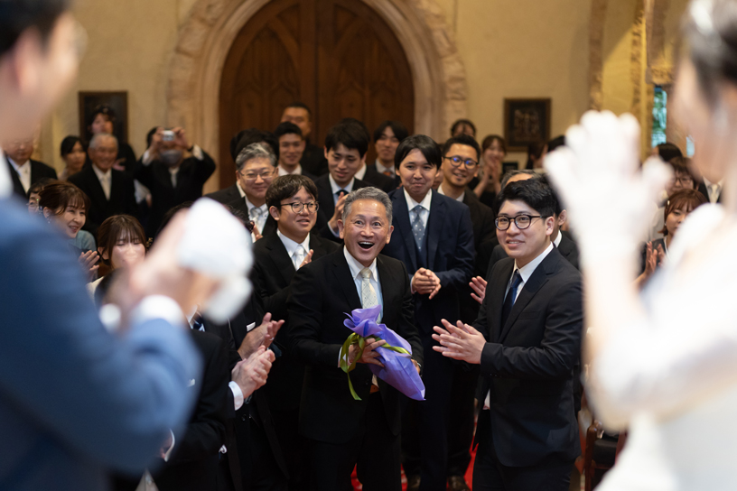 付き合いたての時にステンドグラス美術館を訪れ、外観に一目惚れし、ここで結婚式を挙げたいと思ったから。